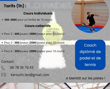 Pour toute demande de cours privés ou stages de padel, n'hésitez pas à nous contacter ici.